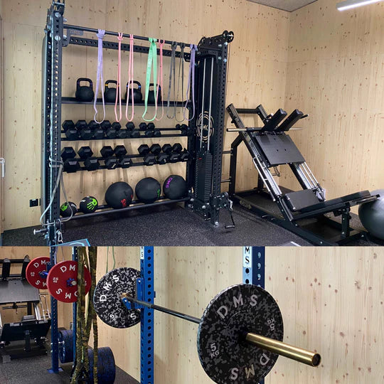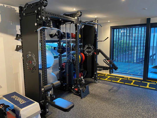 Jonathan being a big user of cable and pulley machines, the best Solution was to install our Cosmos Power Rack offering a very space efficient Power Rack and Pulley System Combo.