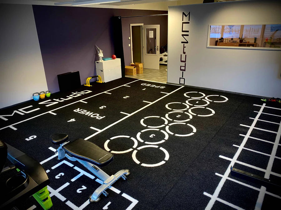 - MC Coaching : 50 sqm of Custom Gym Turf in Black with white graphics